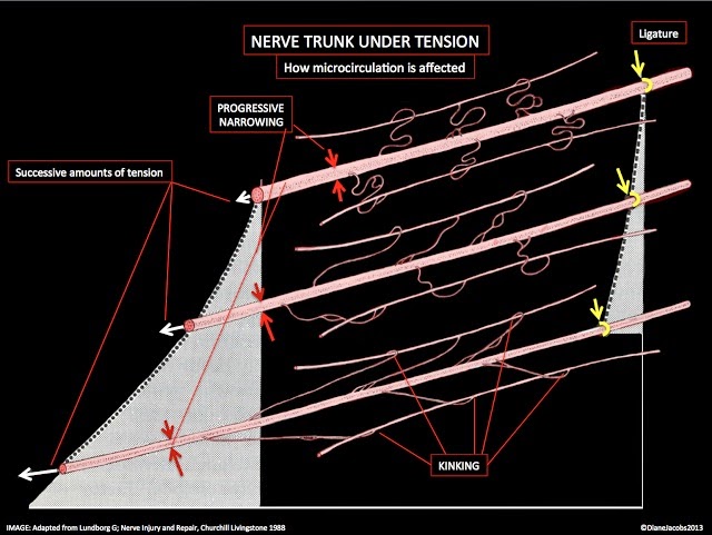 Lundborg, back in the 80's, worked out the microanatomy, how the vascular supply inside a nerve worked, what assisted it to function (um, movement), what happened to it if it became impaired, the sorts of mini-compartment syndrome effect this could have; he measured all sorts of finicky pressure gradients within a given nerve, and so on. Without lymphatics (although this idea of no lymphatics inside nerves is itself disputed by some), sometimes venous drainage alone can't take care of all the neural needs by itself, in there. Inside a tunnel. Who needs to worry about external compression on a nerve if it can develop problems all on its own inside its own tunnel? From blood flow backed up? I.e., increased volume? Lately Coderre has hypothesized a link between mini-compartment syndrome of blood flow in nerves and CRPS.