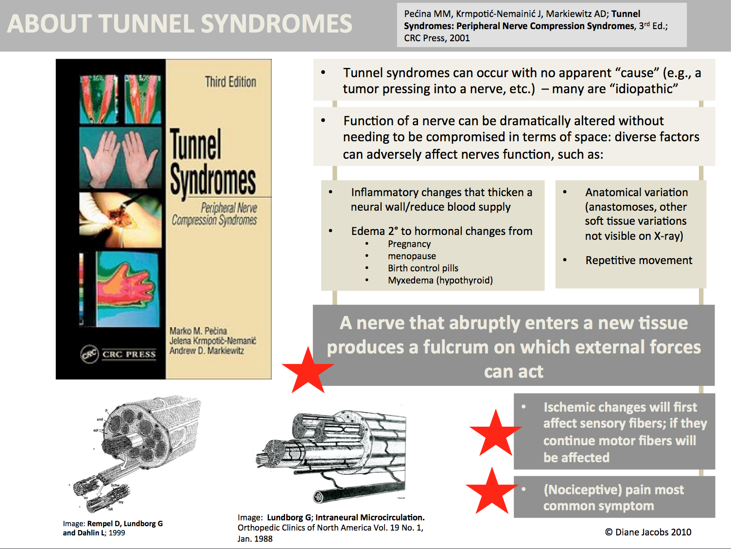 1. Tunnel syndromes can occur with no apparent “cause” (e.g., a tumor pressing into a nerve, etc.) - many are “idiopathic”